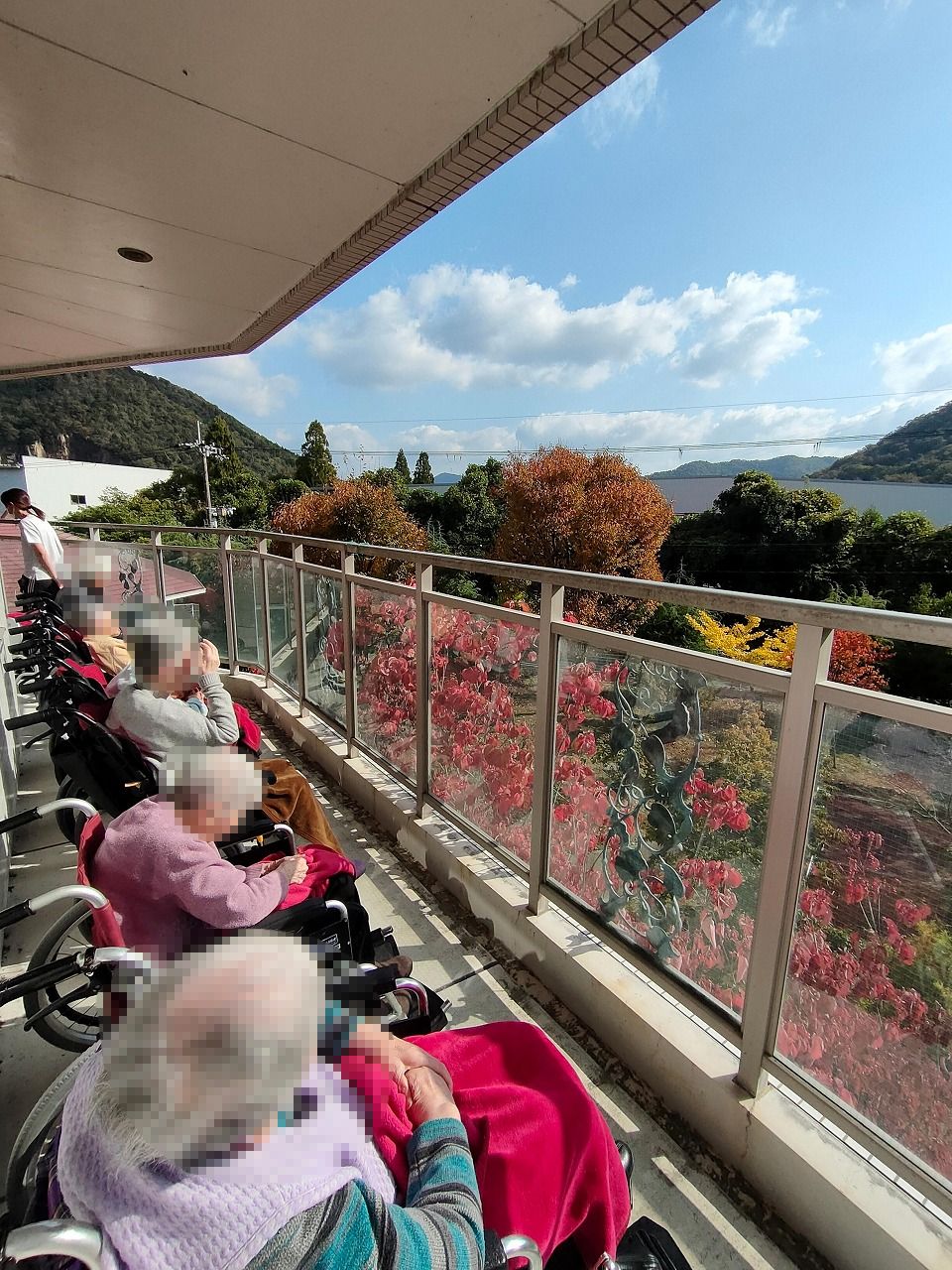 今日の機能訓練は、ご利用者の皆さんをベランダに案内して、