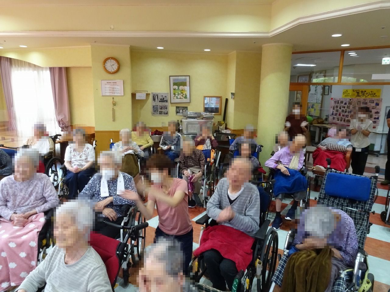 会が終わってからも歌を口ずさんでおられる方や、「また楽しいことしよな!」と言って下さる方、お礼を伝えると「こっちがありがとうやで!」と言って下さる方、1階利用者の方々に日頃の感謝の気持ちを込めてと企画した祝会でしたが、私たち職員の方が利用者の方々から嬉しい気持ちをたくさん貰った祝会となった様に思います。
